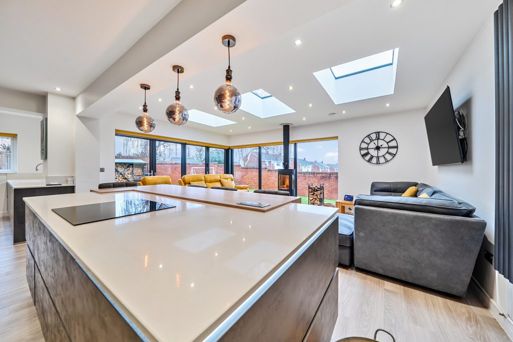 The accommodation comprises Entrance Porch, Entrance Hall, Reception Room, Superb Open Plan Kitchen / Breakfast / Family Room with log burner, double oven, microwave, central island with hob, skylights, integrated washer / dryer, dishwasher, Quooker tap and bi-fold doors to garden, Utility Room with door to garden, Cloakroom, Master Bedroom with fitted wardrobes, 3 further Bedrooms and Shower Room.