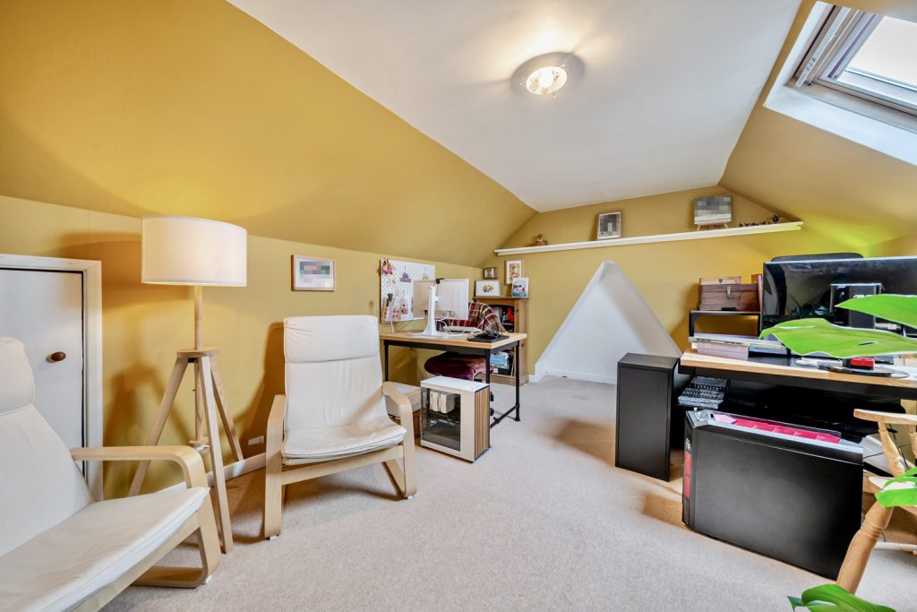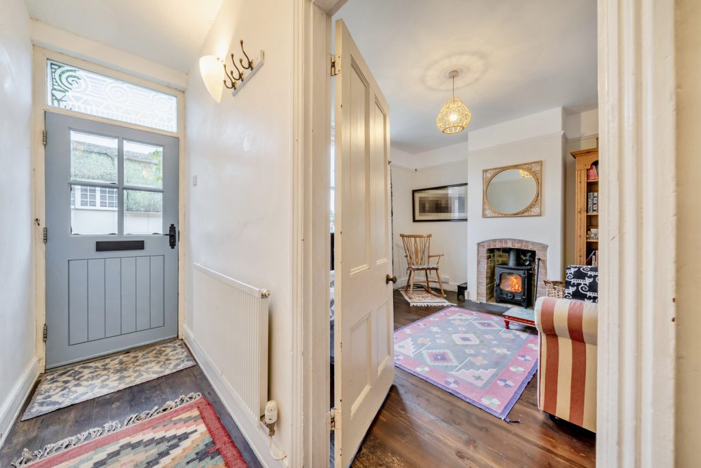 The accommodation comprises Entrance Hall, Living Room with woodburner, Kitchen / Breakfast Room with woodburner and French doors to garden, Master Bedroom with fitted wardrobes, Bedroom 3 with fitted wardrobe, Family Bathroom, Further double bedroom on 2nd floor with Velux window and access to eaves storage.