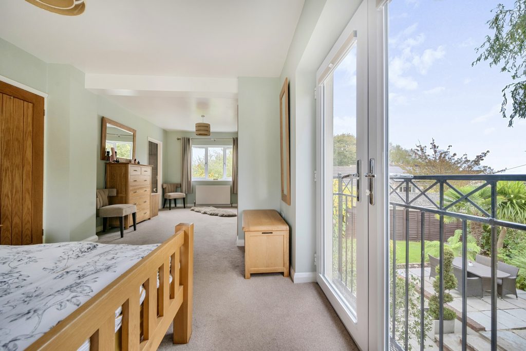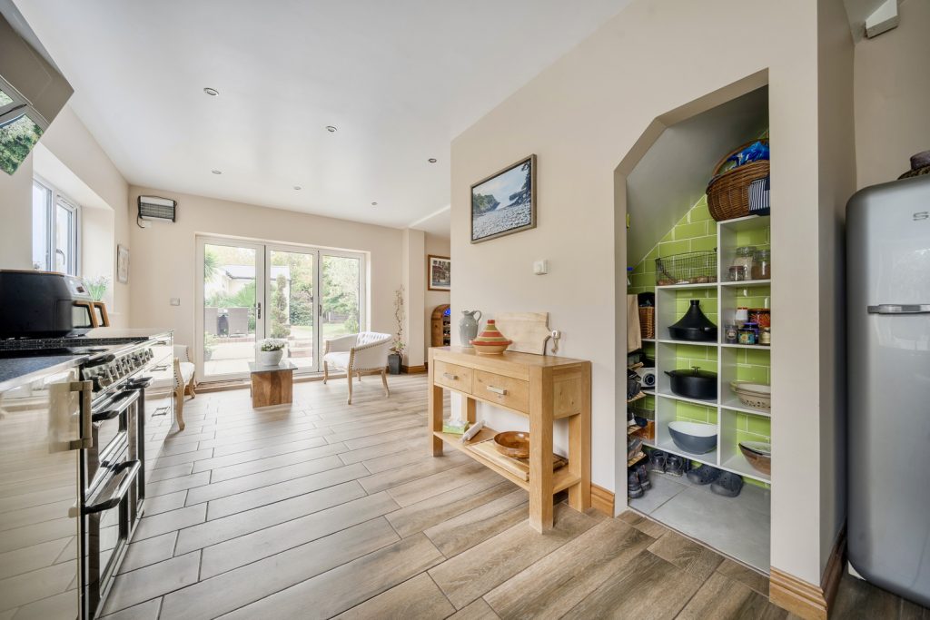The accommodation comprises Entrance Hall, Living Room with wood burner and bespoke shelving and cupboards, Fitted Kitchen / Dining / Family Room with granite worktops, Smeg range cooker, integrated dishwasher and microwave with bi-fold doors to garden, Walk-in pantry, Utility Room with built-in freezer, cupboard space and plumbing for washing machine, Cloakroom, Spacious Master Bedroom with fitted wardrobes and French doors to South facing Juliet Balcony, 2 further Bedrooms and Jack & Jill Bathroom with free standing bath and rainfall shower.