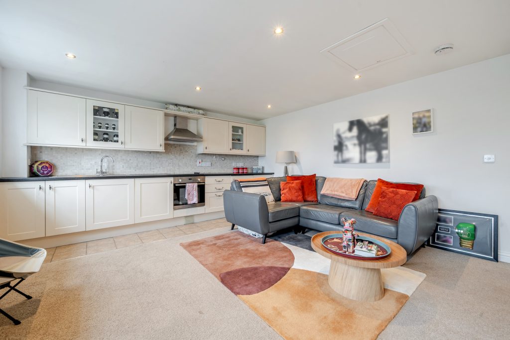 The annexe accommodation comprises Bedroom with French doors to garden, Bathroom and Kitchen / Living / Dining Room.