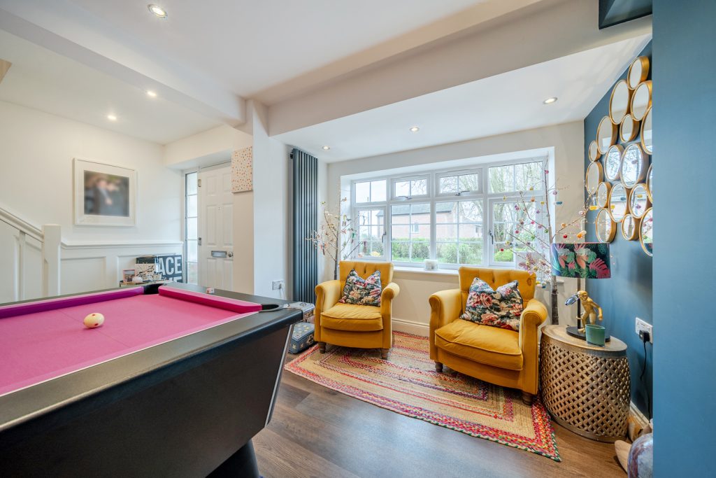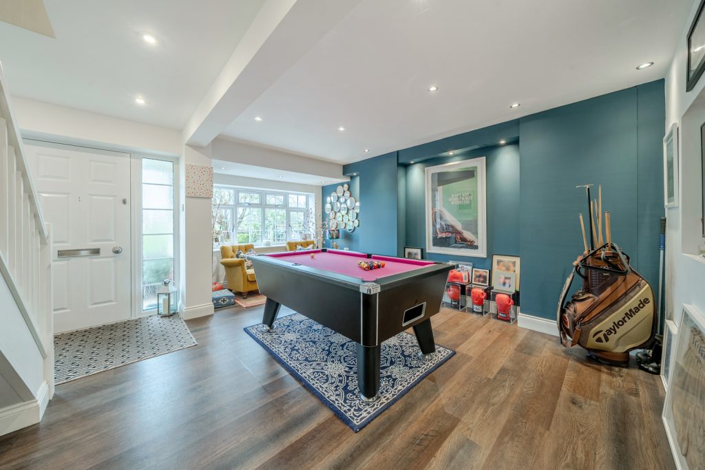 The accommodation comprises Games Room, Living Room, Open Plan Kitchen / Breakfast / Dining Room with French doors and patio doors to garden, Shower Room, Master Bedroom with fitted wardrobes, door to Balcony and Ensuite Shower Room, 3 further Bedrooms and Family Bathroom.