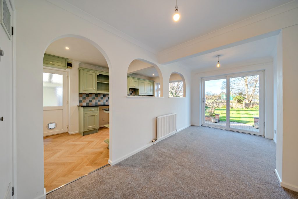 The accommodation comprises Entrance Hall, Living Room, Fitted Kitchen with granite work surfaces, Dining Room with door to garden, Master Bedroom, 2 further Bedrooms, Bedroom 2 with fitted wardrobe and re-fitted family Bathroom with separate Shower.