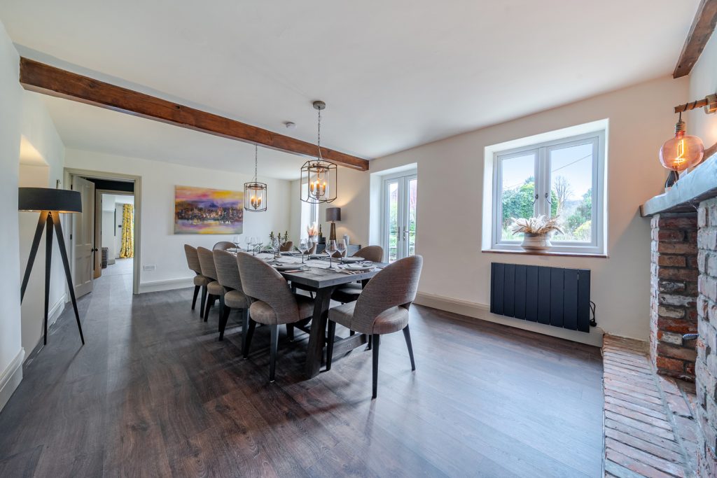 The accommodation comprises Entrance Hall with open fire, Snug with woodburner, Kitchen / Breakfast Room with electric E7 Aga, separate oven & induction hob, granite worktops, roof lights and door to conservatory, Utility Room with WC, Conservatory with French doors to garden, Gym / Wellness Studio, Dining Room with exposed beams, log burner and French doors to garden, Study, Sitting Room with French doors to garden and with stairs leading to Bedroom 4 and Ensuite Shower Room, Master Bedroom with fitted wardrobes and door to Balcony, 2 further double Bedrooms and Family Bathroom with separate shower.