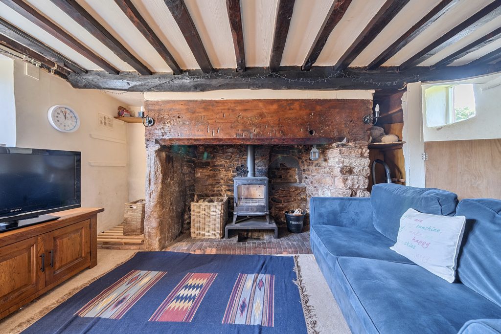 The accommodation comprises Entrance Hall with door to rear garden, Living Room with inglenook fireplace, woodburner, bread oven and exposed beams, Kitchen with Everhot range cooker, Downstairs re-fitted Shower Room with underfloor heating, Master Bedroom with built in wardrobe and cupboard, Bedroom 2 and Bedroom 3 / Dressing Room.