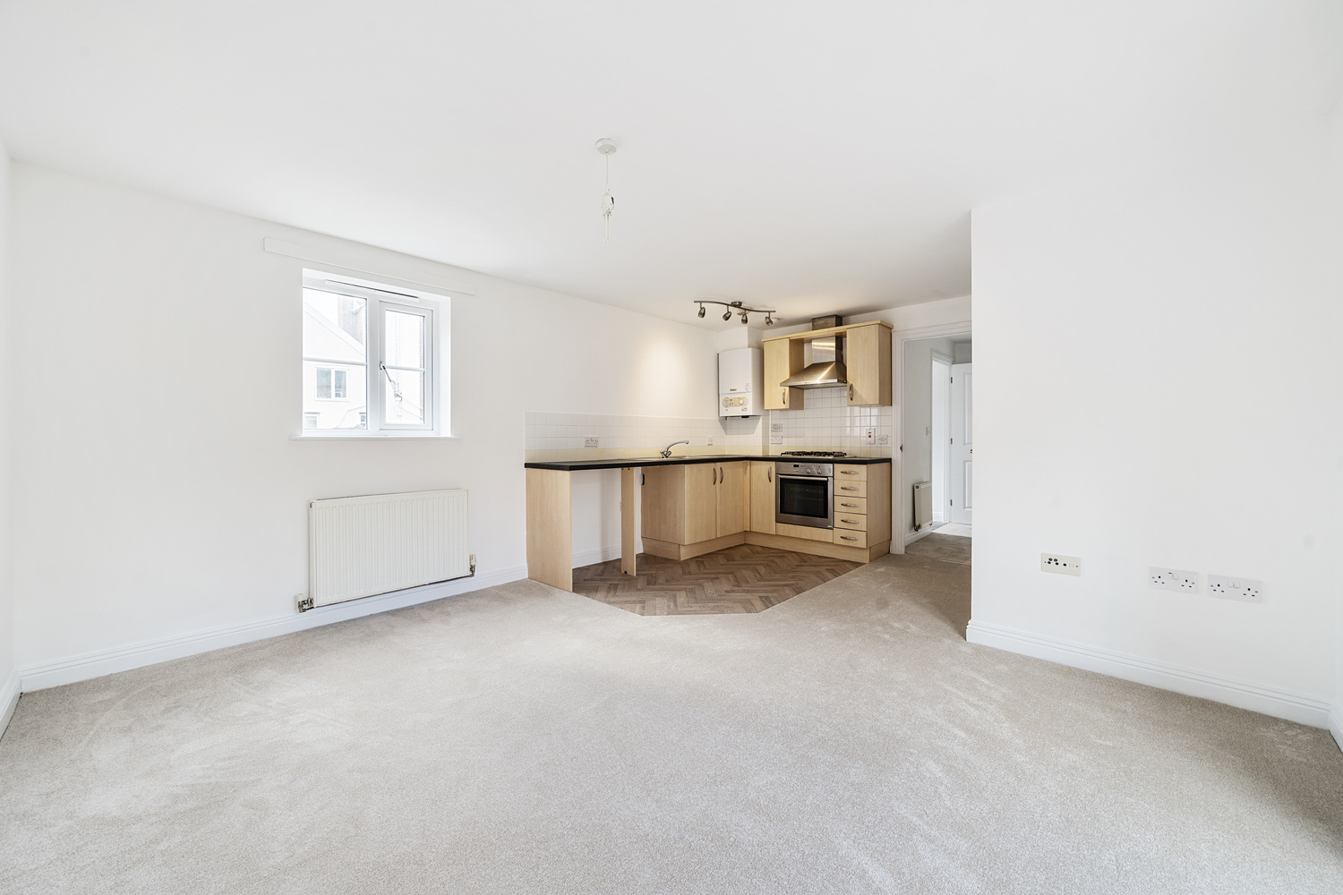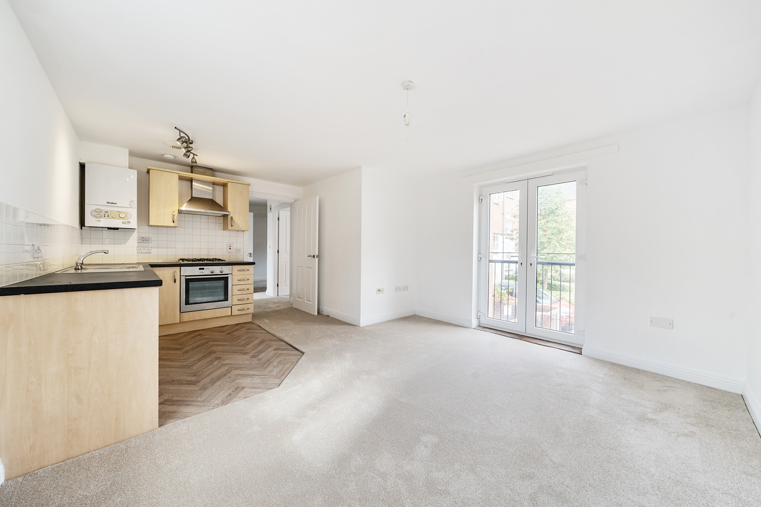 The accommodation comprising Entrance Hall, Open Plan Kitchen / Living Room with French doors to Juliet balcony, Master Bedroom, Further double Bedroom and Family Bathroom.