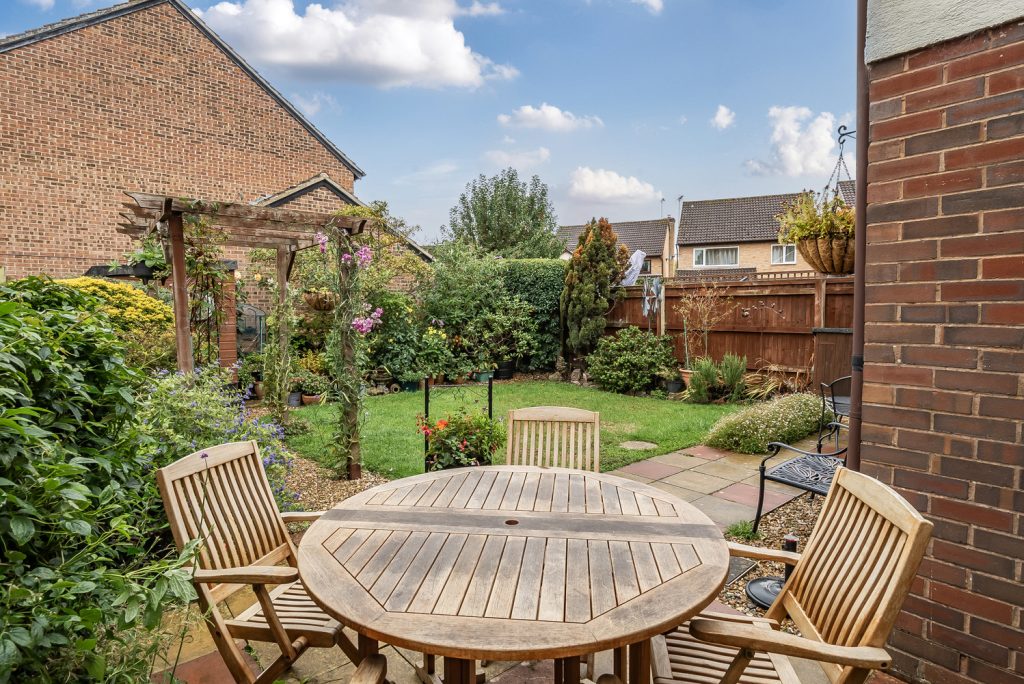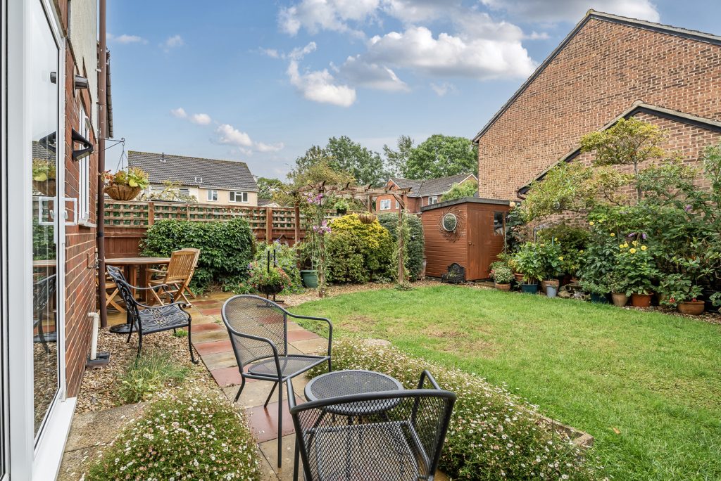 The accommodation comprises Entrance Hall, Living Room, Dining Room with door to garden, Fitted Kitchen, Utility Room with door to garden and Garage, Cloakroom, Master Bedroom, 2 further Bedrooms and Family Bathroom.